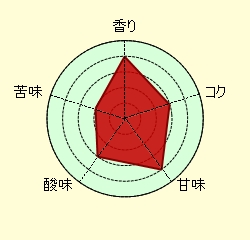チョコレートやキャラメルの香りがあり 口に含むと高地産特有の 柑橘系の酸味が有ります。 バランスは抜群のコーヒーです。